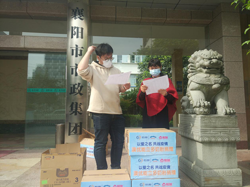 4月14日上午市慈善总会、澳优乳业、育婴房共同发起,向奋斗在市政建设一线的宝妈宝爸送奶粉活动已由襄阳市政建设集团工会组织分发,澳优乳业捐赠给市政集团的94罐婴幼儿奶粉已全部发放到市政集团一线职工手中,疫情期间现场采用间隔一米排队的方式避免了人员的聚集,隔距不隔心,以爱之名,共战疫情!