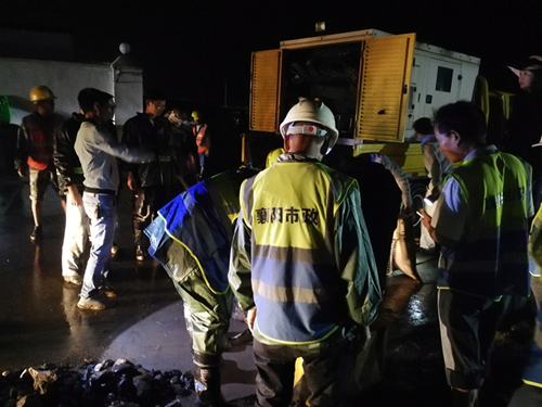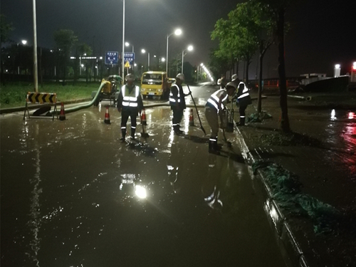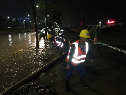 接到紧急救援命令后,市政集团二公司经理冯阳阳在现场短短10分钟内火速集结分公司及项目管理人员10余人、工人20余人以及一台皮卡车、二台发电机组、6台污水泵、赶赴积水路段开展抢险。瓢泼大雨中,党员干部、工人师傅、青年骨干手拉手、肩并肩,撬井盖,铲泥浆,扛发电机,架泵抽水。开足马力,在抢险最前线,开展了一场“与时间赛跑”的大会战。