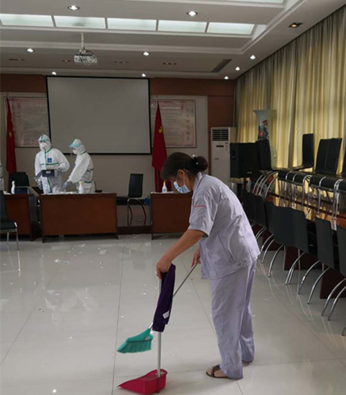 在疫情最严重的两个月里,物业公司安排人员对集团公司办公区和所属家属院每天两遍消毒查杀,对办公区及家属院进行全面清扫,不留死角。复工复产后,在常态化疫情防控的环境下,物业公司组织人员对办公区域进行全覆盖式消杀。对办公区的所有空调进行全面的清洗、调试、消毒,不能正常使用的空调组织人员修理。门卫处安排专人执勤,对进出办公区的人员进行登记并测量体温,做到“体温必测,口罩必戴”的原则,坚决防止疫情反弹。
