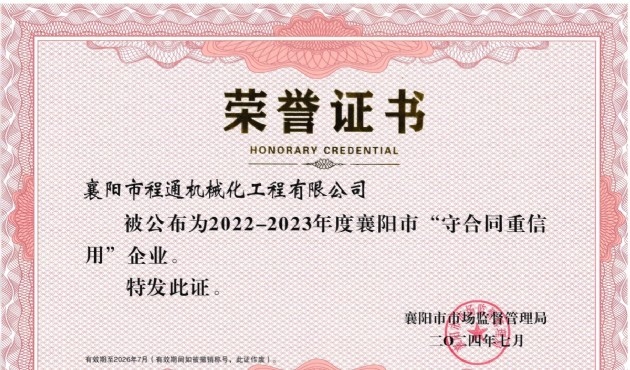 喜讯!程通机械化公司凭借其在市场经营中的卓越表现和对合同精神的严格遵守,荣获了由襄阳市市场监督管理局颁发的襄阳市2022&mda