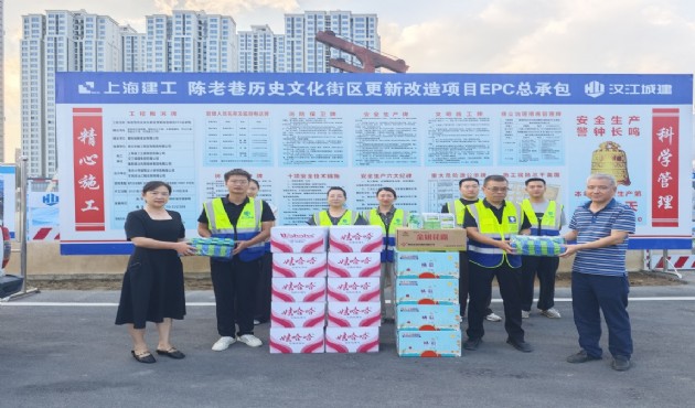 6月24日,市政公司心系一线作业人员,到市区在建项目现场开展“夏日送清凉”活动,为坚守岗位的建设者送去丝丝清凉与深