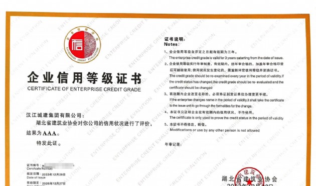 近日,湖北省建筑业协会公布了关于《2023年度湖北省建筑施工企业信用评价结果》的通知,汉江城建以过硬的综合实力顺利通过此次复