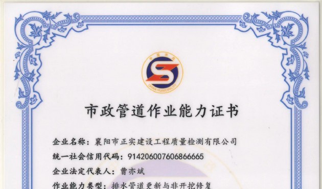 近日,正实公司顺利通过中国市政工程协会市政管道与非开挖技术专业委员会的评审与认证,取得了排水管道检测与评估及排水管道更新