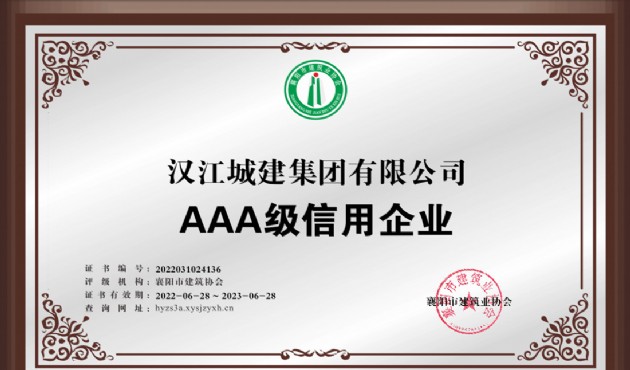 近日,襄阳市建筑业协会公布2022年度第一批襄阳市建筑业企业信用评级结果,汉江城建的信用被评定为最高等级AAA级。该信用评级是对