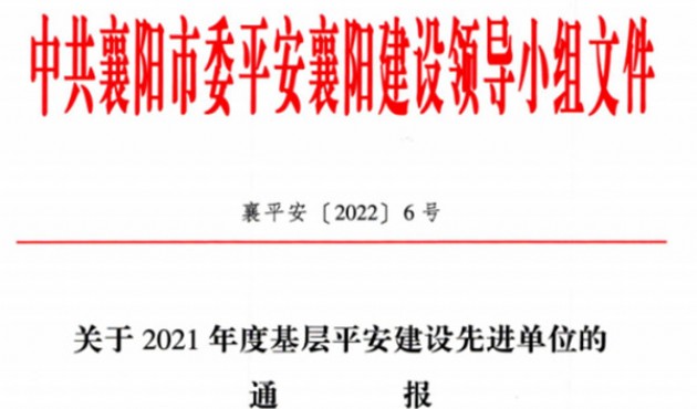 近日,中共襄阳市委平安襄阳建设领导小组发布文件《关于2021年度基层平安建设先进单位的通报》,汉江城建获“基层平安建设先