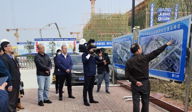 3月3日下午,华中农业大学校长李召虎、襄阳市副市长张学林一行到华中农业大学襄阳校区(现代农业研究院)项目现场考察工程建设情