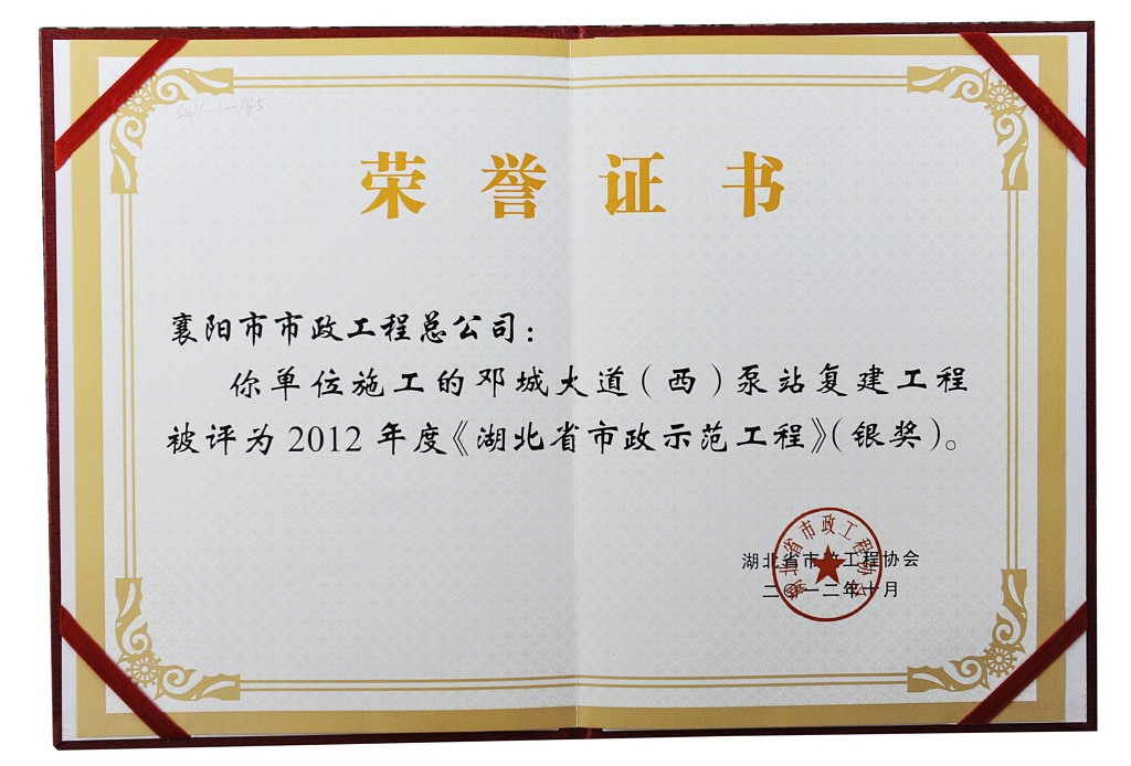2012樊宛路工程襄阳市“隆中杯”奖杯