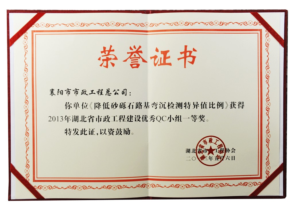 2013砂砾石路基弯沉检测湖北省市政QC一等奖