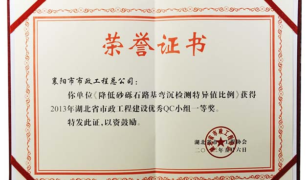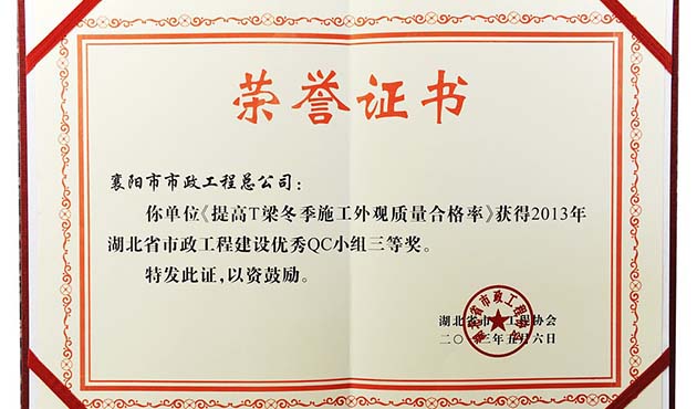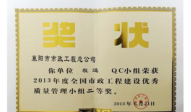 2013全国市政质量管理小组二等奖