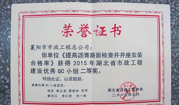 2015沥青路面井座安装合格率湖北省优秀QC二等奖