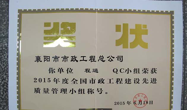 2015全国市政先进质量管理小组称号