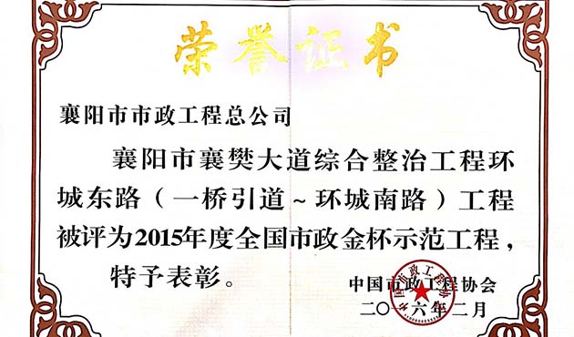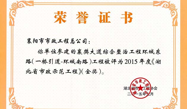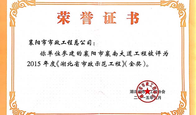 2015襄南大道湖北省市政示范工程金奖
